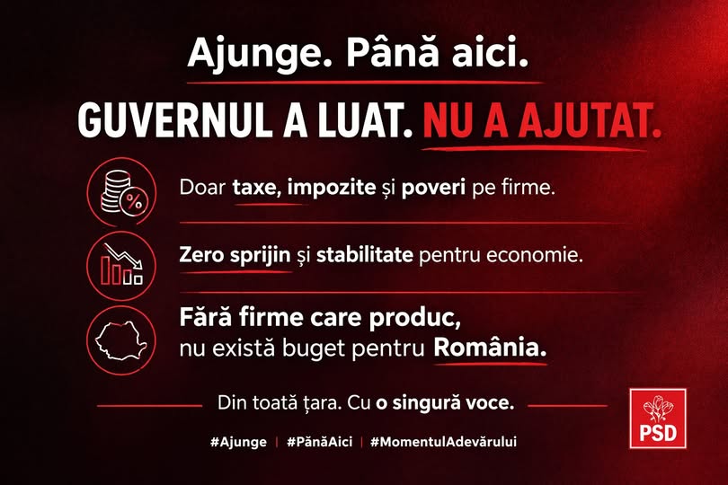 Bugetul României nu este alimentat din conferințe de presă, din propagandă și din powerpoint-uri guvernamentale. Bugetul este alimentat de firmele care emit facturi, plătesc salarii, achită contribuții, suportă controale, plătesc TVA, accize, impozite și țin în viață economia reală. Dacă aceste firme sunt sufocate, atunci tot lanțul se rupe: investițiile scad, locurile de muncă dispar, consumul încetinește, încasările se reduc, iar guvernul ajunge să ceară și mai mult de la tot mai puțini.