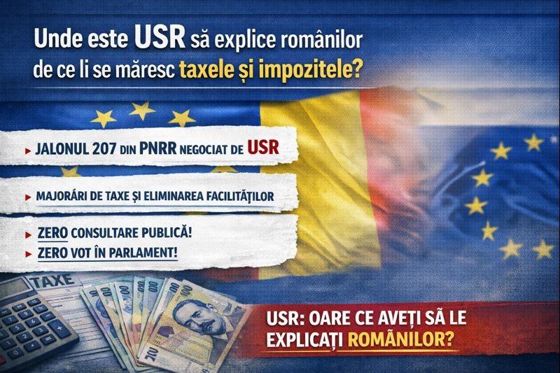 Este esențial ca adevărul să fie spus clar: aceste măsuri nu sunt întâmplătoare și nu au apărut peste noapte. Ele derivă din angajamentele asumate de România în PNRR, negociate în anul 2021, pe componenta fiscală, în perioada în care USR avea un rol central în Guvern, iar ministrul responsabil de PNRR a fost Cristian Ghinea (USR).